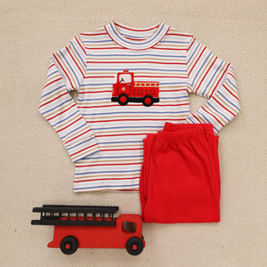 Fire Truck W/ Check Pants Set