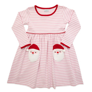Dress up for the holidays with the Santa Face Pocket LS Dress! Featuring a green and white stripe pattern, this dress will bring a festive touch to your wardrobe. But the real star of the show? The adorable sherpa Santa face pockets, making this dress perfect for any Christmas celebration.