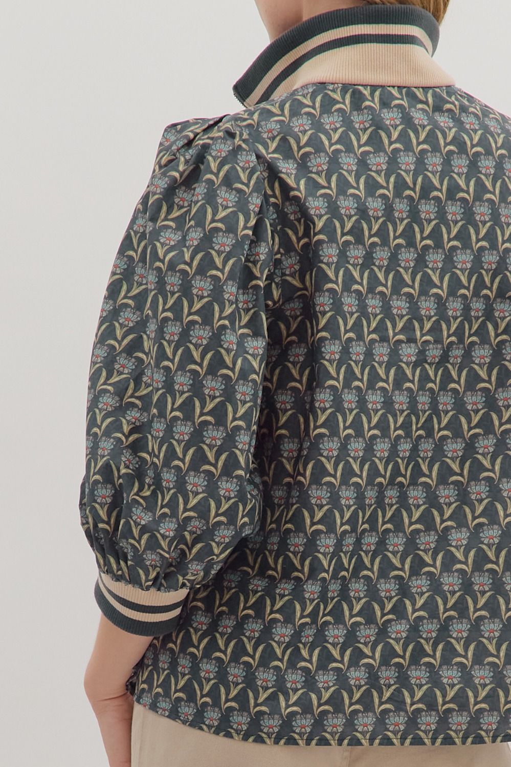 Entro- Floral Puff Sleeve Top- Olive