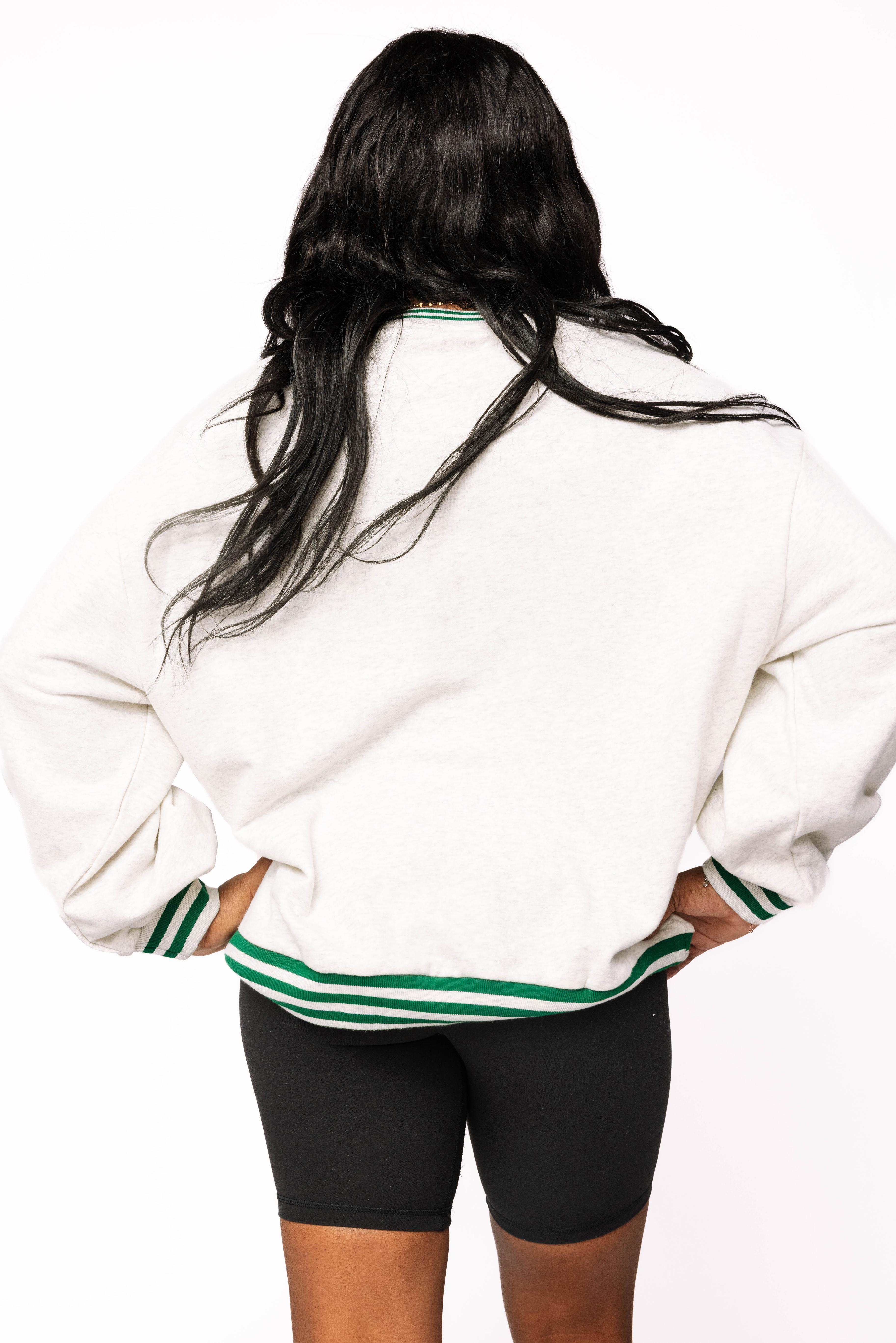 Queen of Sparkles- Grey Sport Stripe 'Caf∊゠Du Monde' Sweatshirt- (Women's)
