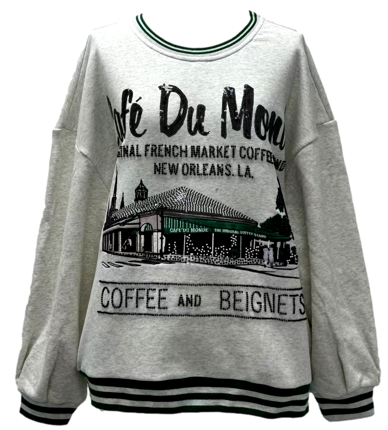 Grey Sport Stripe 'Cafe Du Monde' Sweatshirt- (Women's)