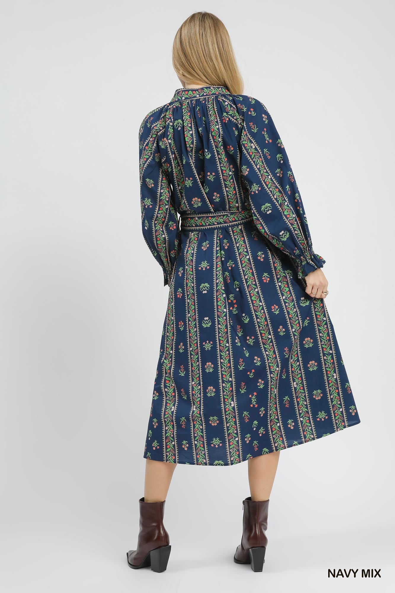 Mix Floral Stripe Maxi Dress- Navy Mix