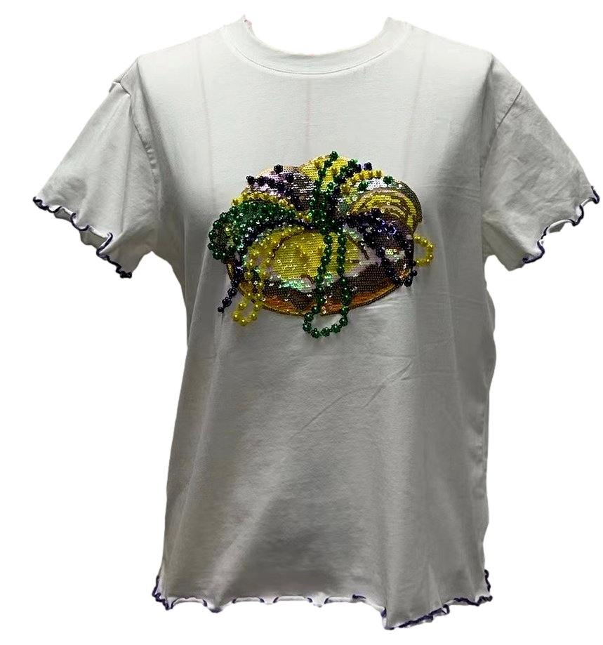 Queen of Sparkles- White Frill Edge King Cake Tee- White (Women's)
