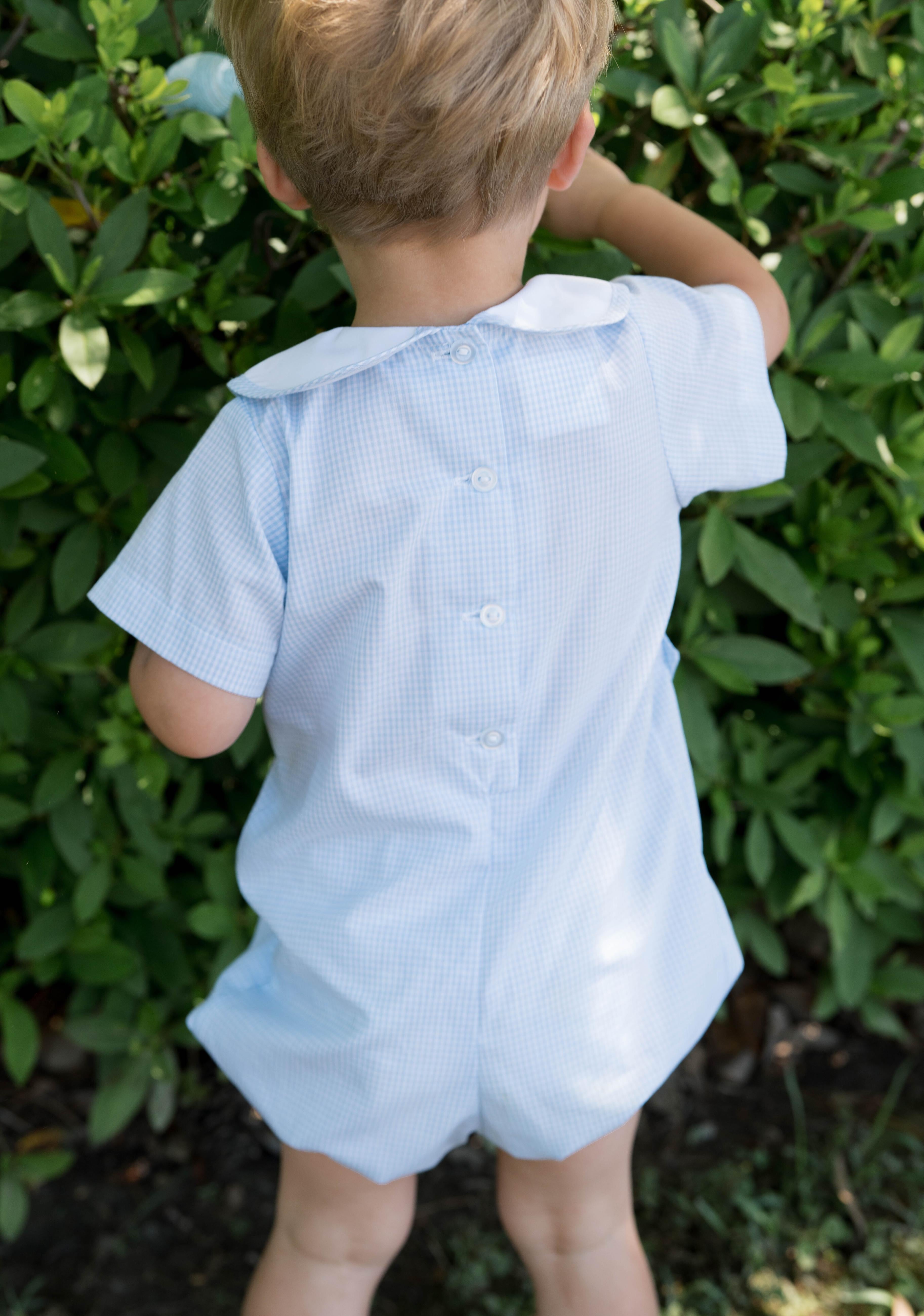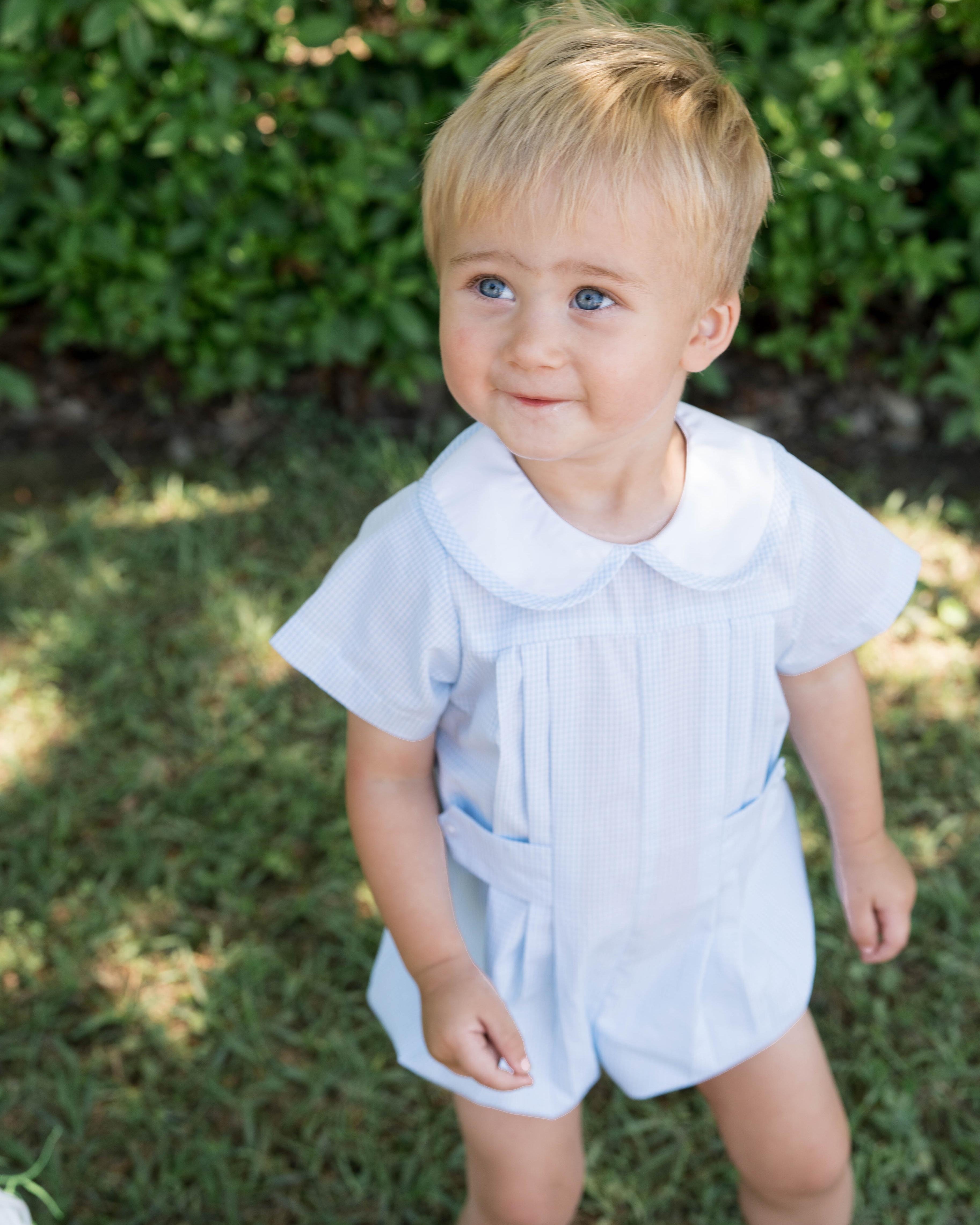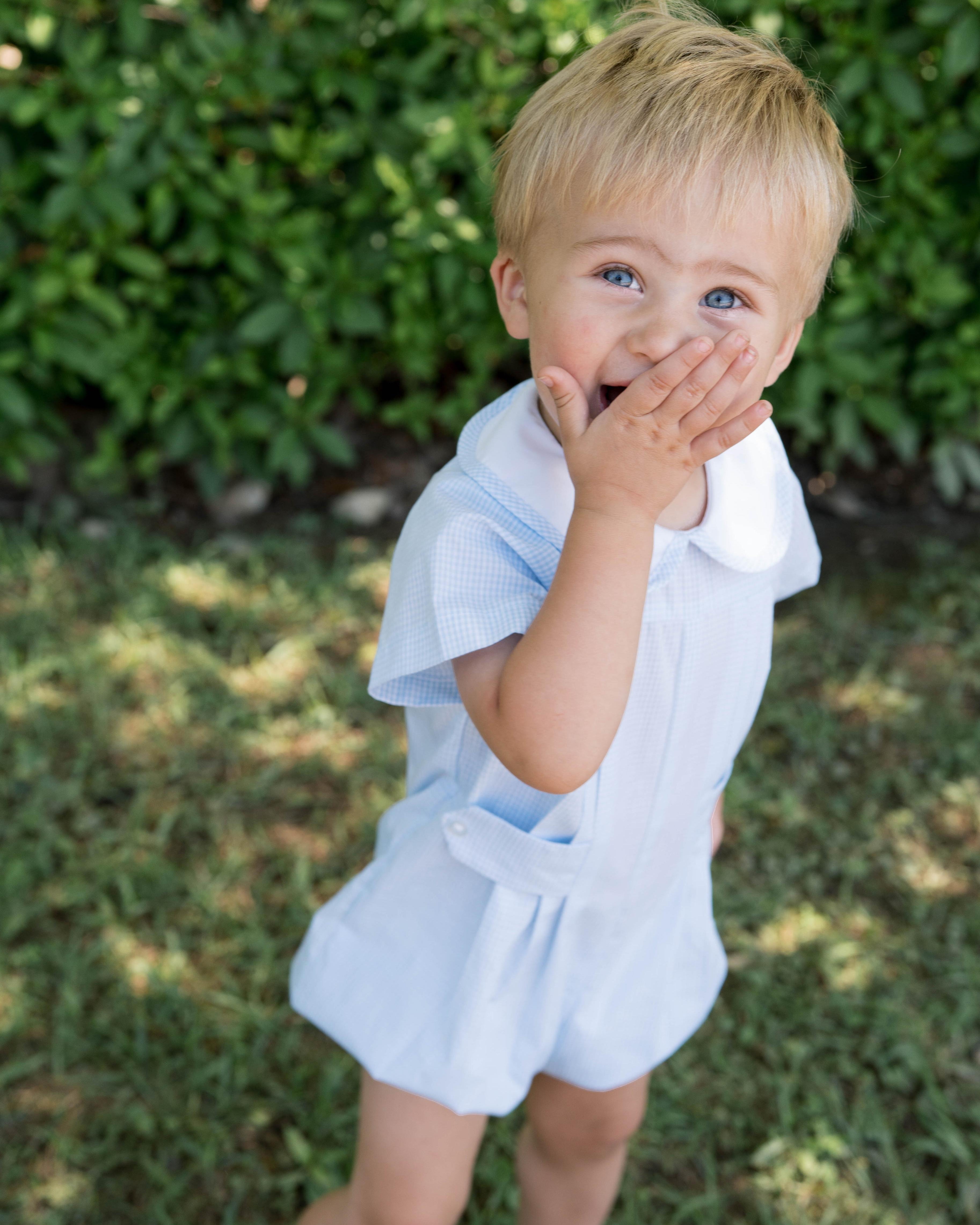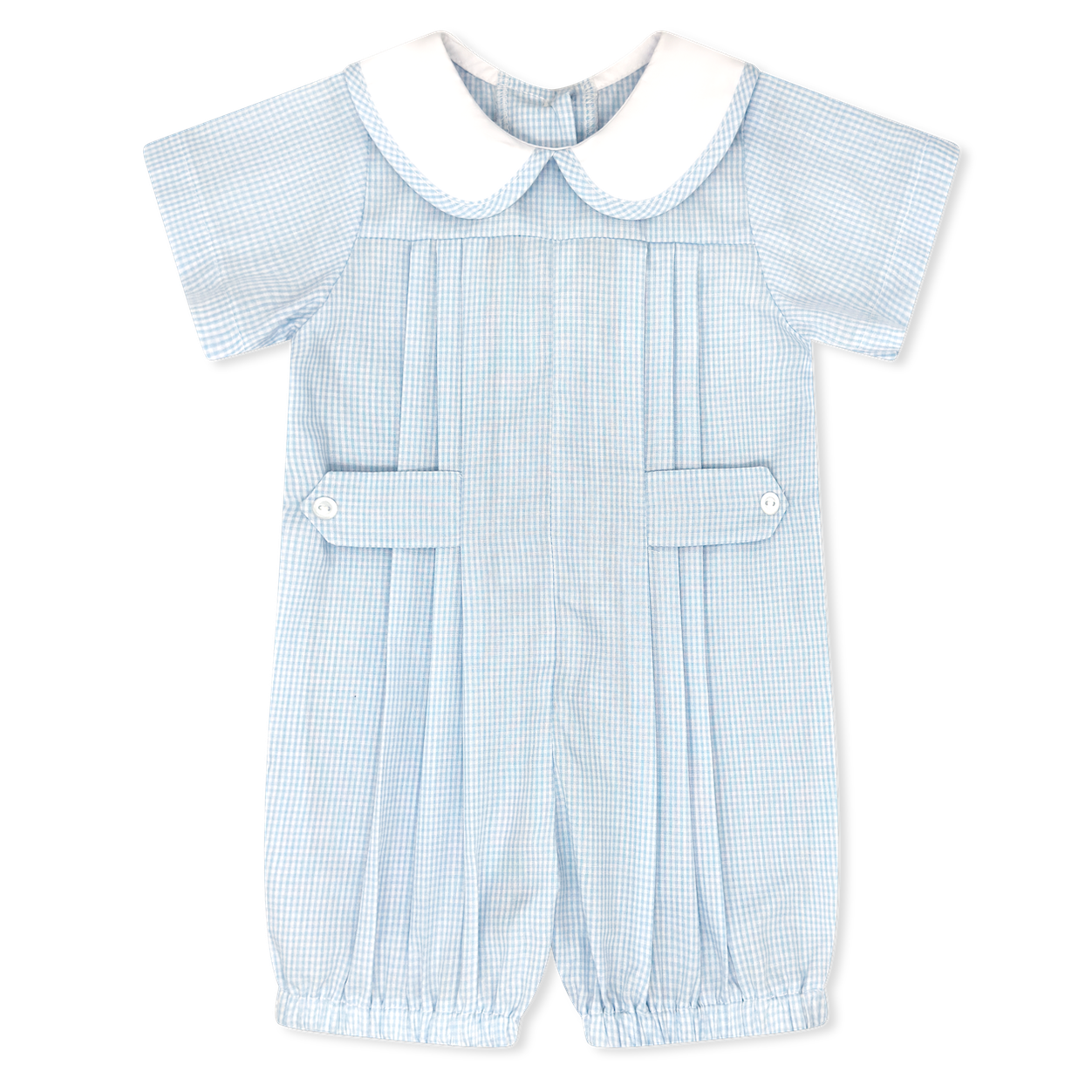 Smart and timeless, the Andrew Bubble in Baker Blue Mini gingham is a classic choice for your little gentleman.