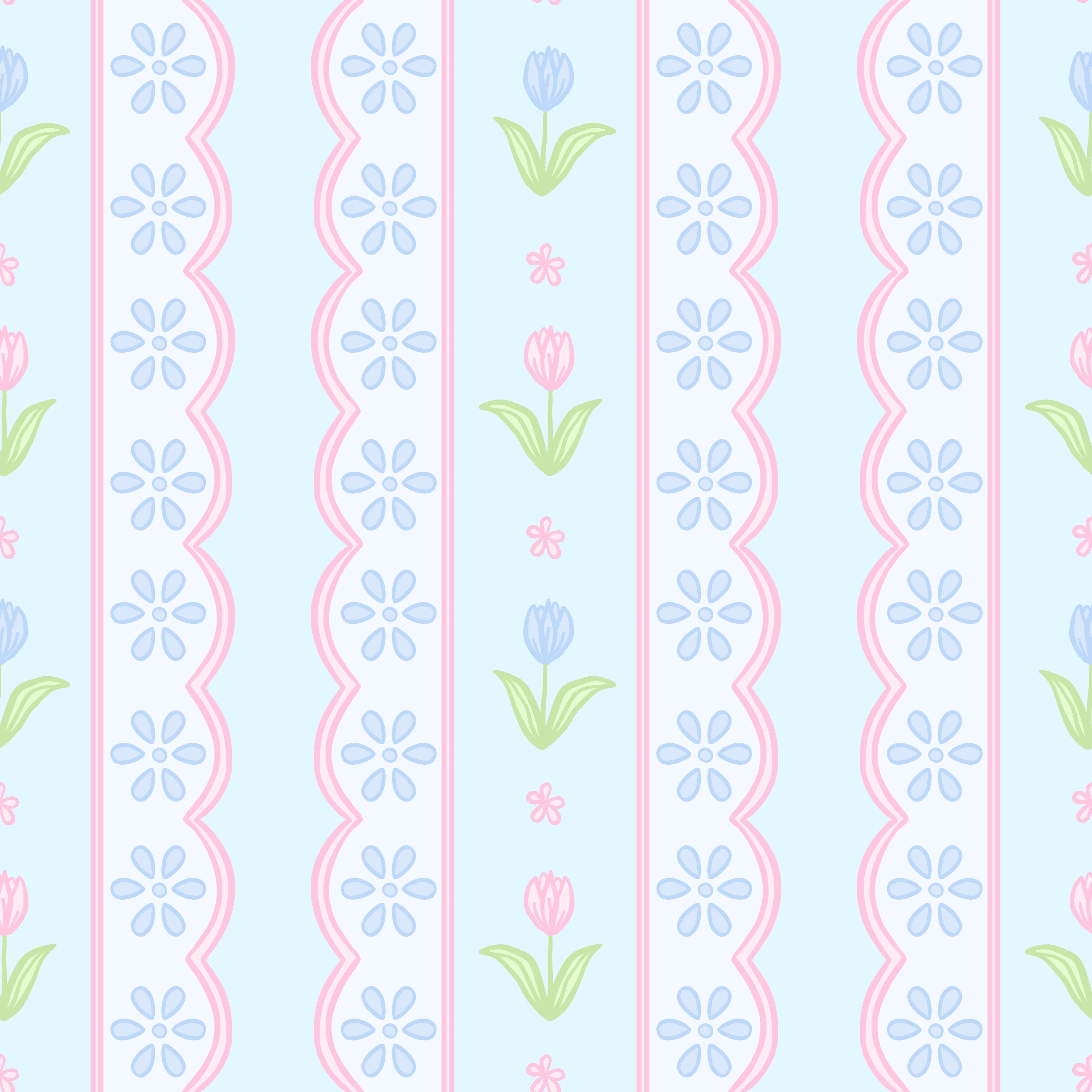• Blue floral scallop print