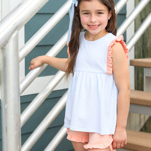 Trotter Street Kids- Charlie Bubble- Light Blue Stripe/Coral