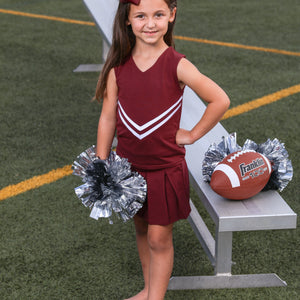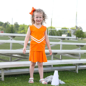 It’s time to cheer on your favorite team in the Cheer Uniform Set in Navy. With a pleated skort and a top perfect for personalization. Made with tailgating, watch parties, & game days in mind! Multiple color options available.