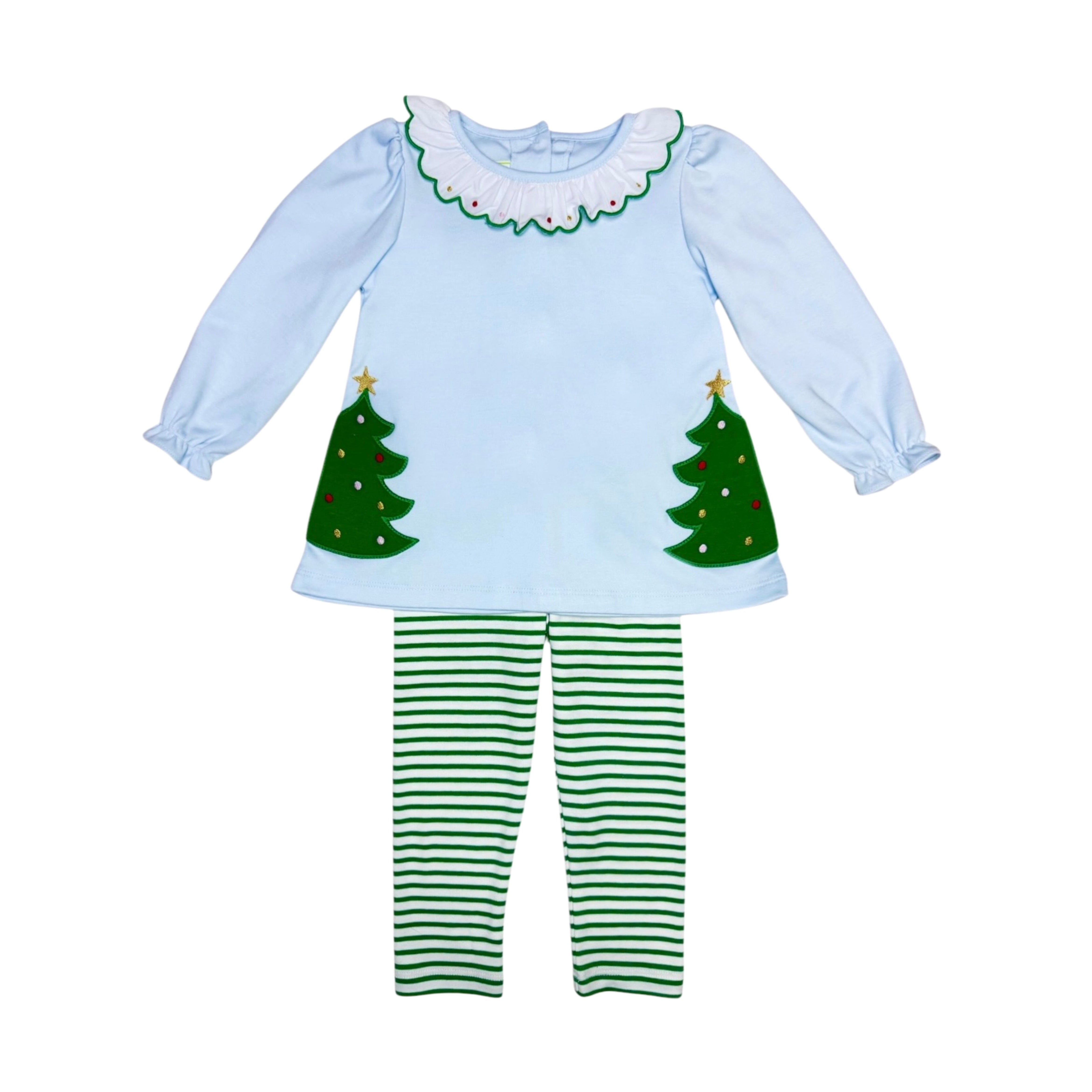 Christmas Tree Amelie Knit Legging Set- Lt. Blue