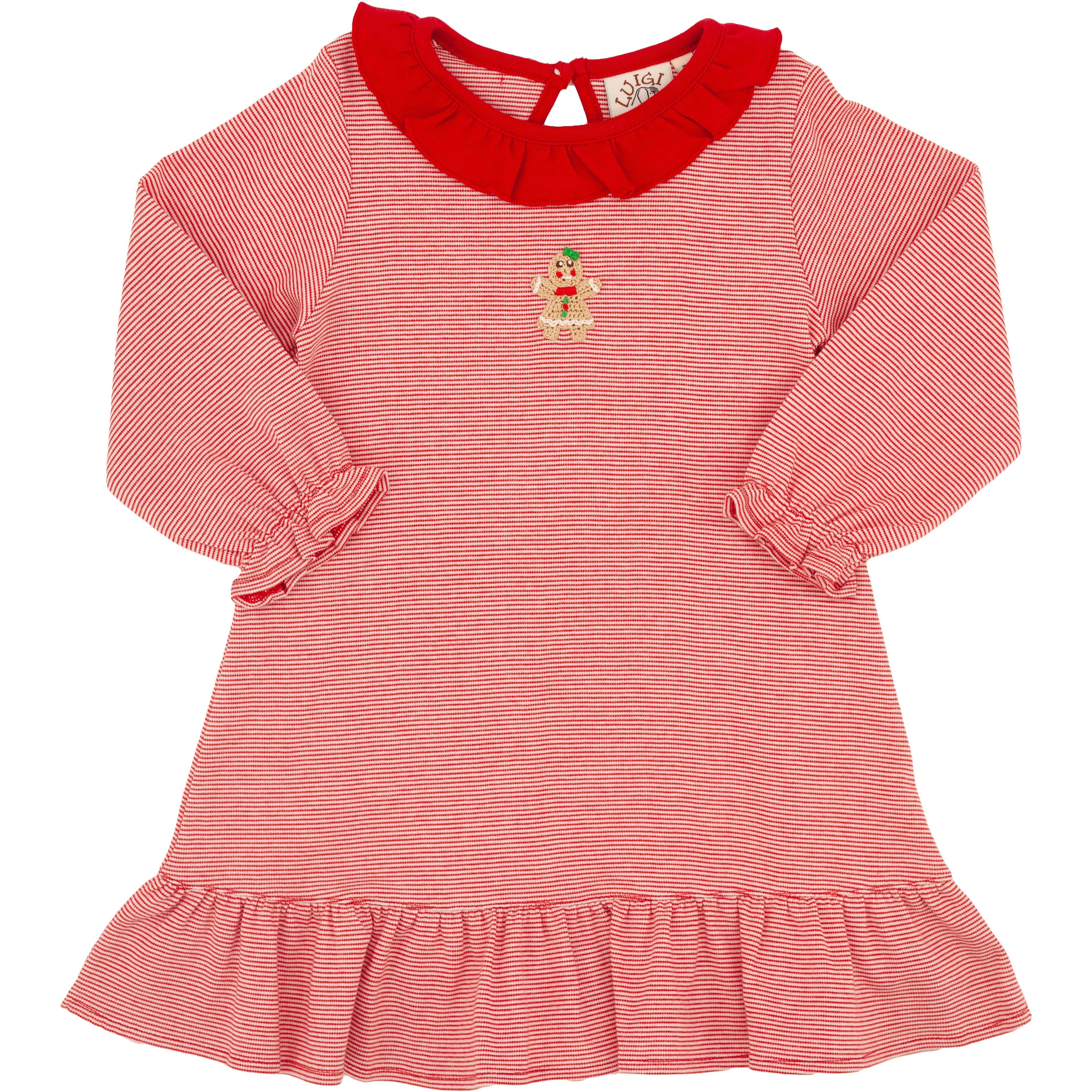 Get cozy and cute with the Crochet Gingerbread Dress! This long sleeve dress is crafted from soft pima cotton and features a charming crochet gingerbread design. With a playful ruffled collar, this dress is perfect for adding a quirky touch to your wardrobe. Stay stylish and comfortable all day long! Check out the Crochet Gingerbread collection for a sibling match.