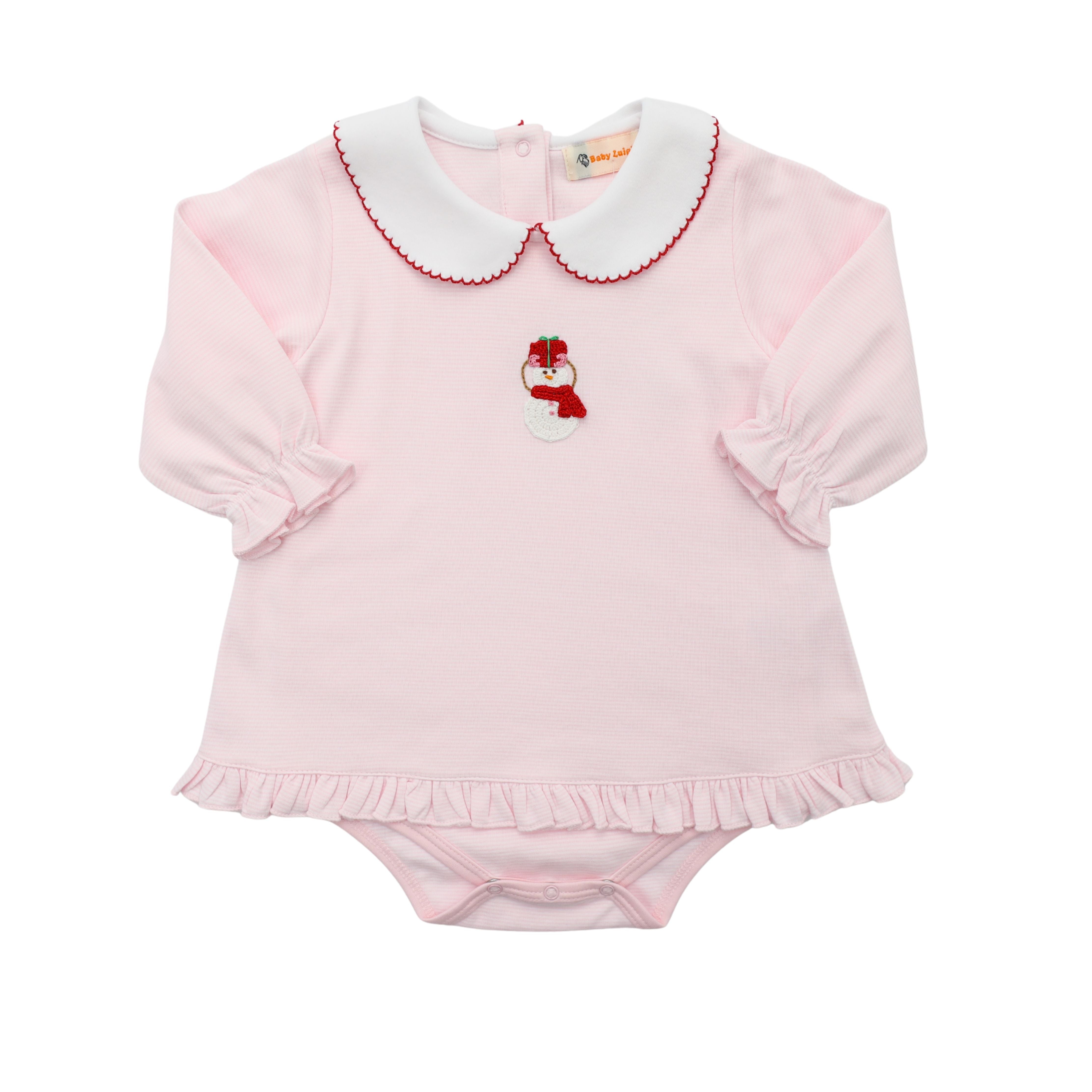 The Crochet Snowman Surprise Skirted Bubble is "Snow" much fun. Your little girl will be ready for all the holiday celebrations.