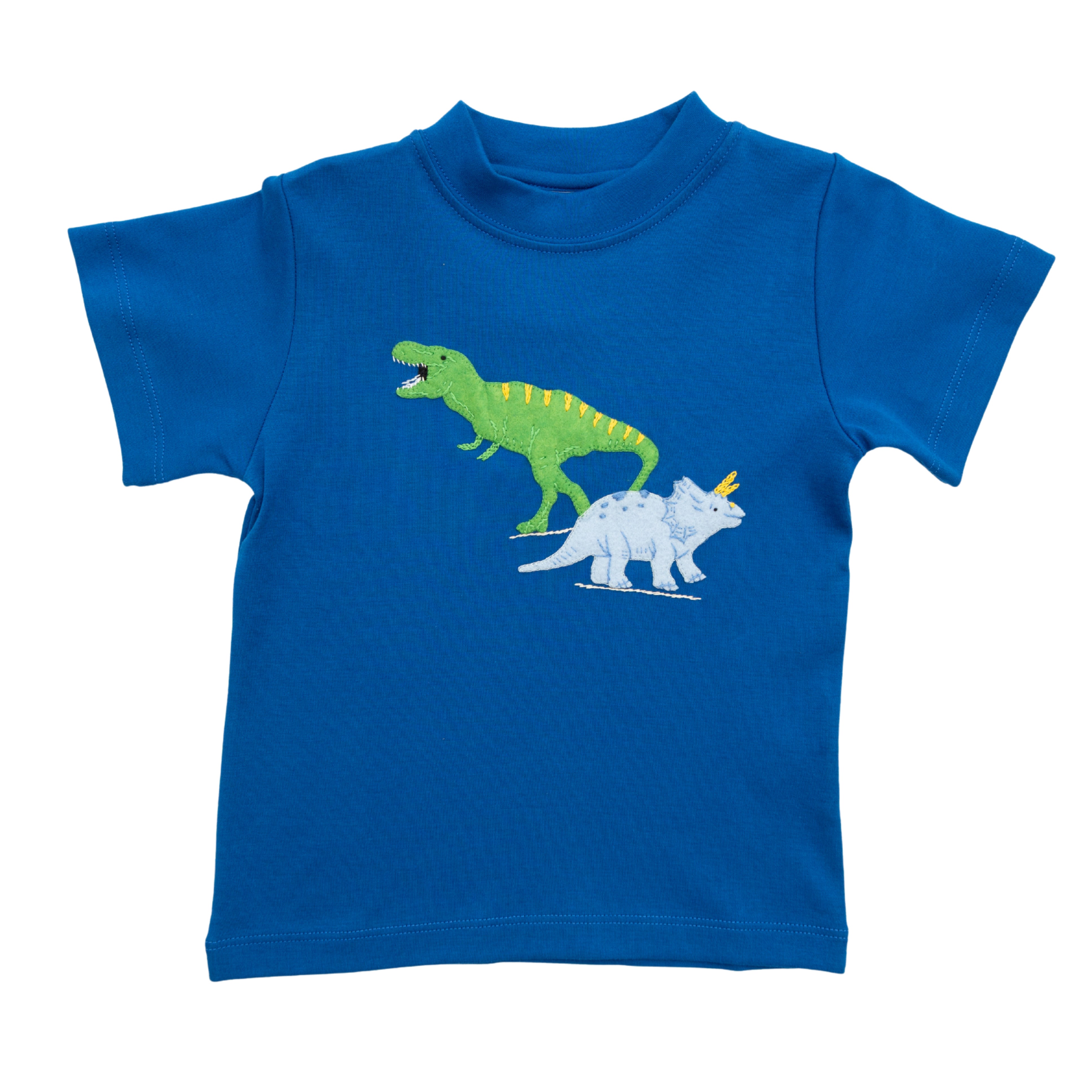 Roar with delight in this royal blue shirt featuring some friendly dinosaurs! Perfect for boys who love adventure and making new pals. Add some fun to your boy's wardrobe with this playful and unique tee. (T. Rex-ellent choice!)