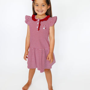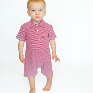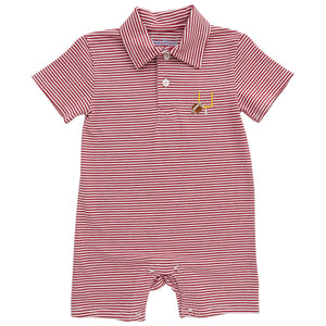 Get ready for game day with this playful polo featuring crimson stripes and a fun embroidered football detail. Perfect for cheering on the team in style and comfort!