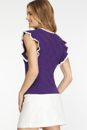 GAME DAY - RUFFLED SLEEVE SWEATER TOP WITH CONTRAST DETAIL