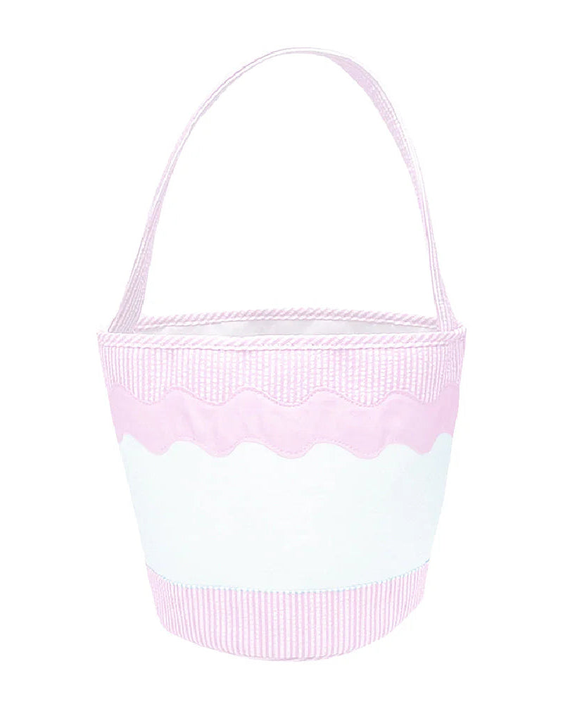 Give your little one’s most prized possessions the perfect place to call home. Accented with scalloped grosgrain ribbon and crafted of soft seersucker and durable canvas, this portable tote makes an adorable accessory for carrying around their favorite toy treasures.