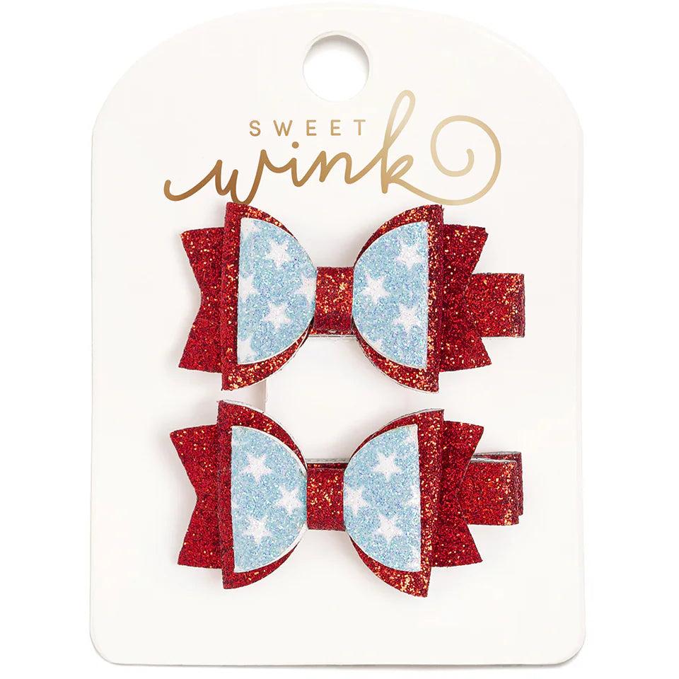Sweet Wink- Glitter Flag Bow Clip Set