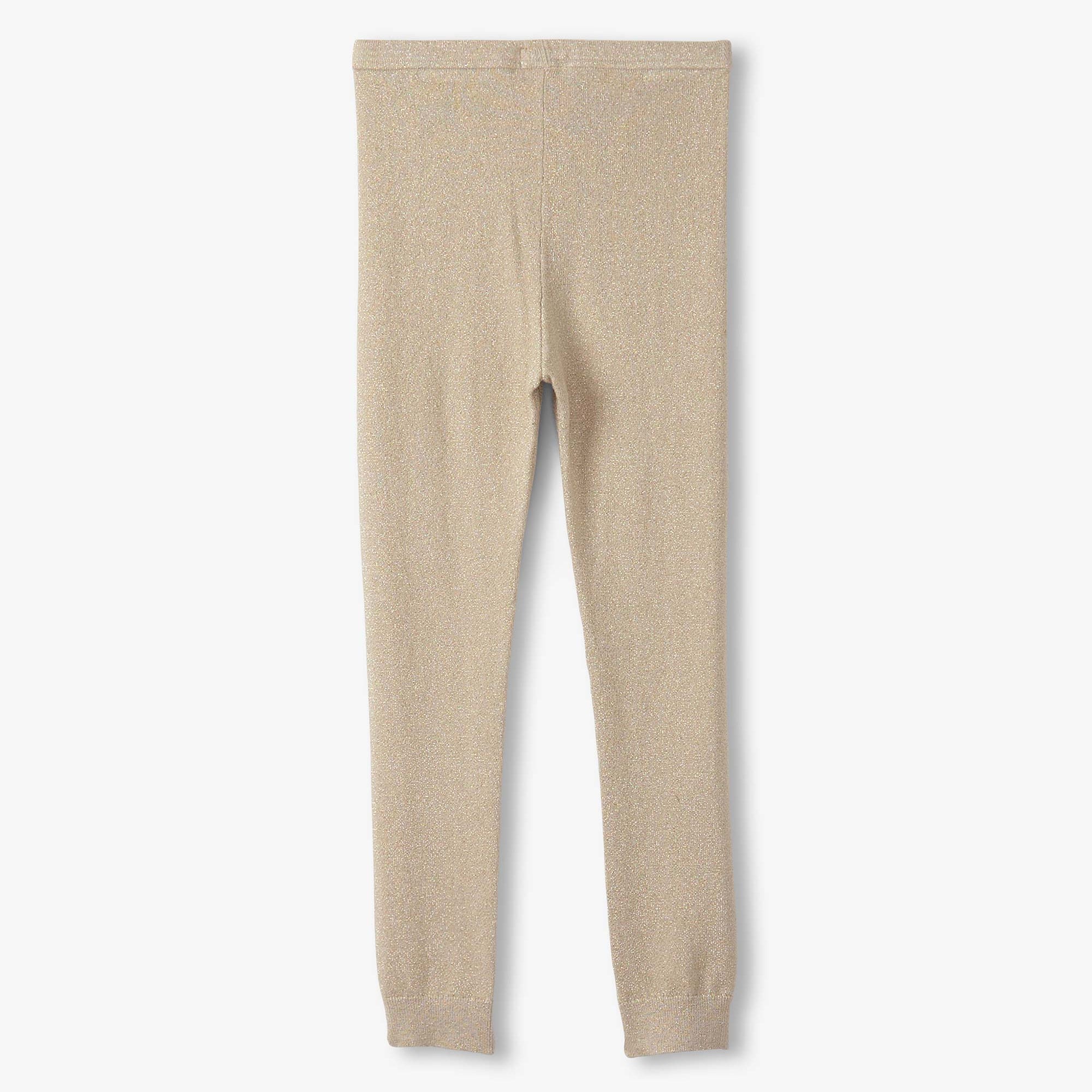 Shine bright with the Gold Glitter Leggings, made from a soft cotton-blend shimmer yarn that combines comfort with a touch of glam. These glitter-knit leggings feature a luminous gold tone with a subtle metallic sheen that adds sparkle to any outfit. Designed with a flexible stretch waistband and fitted bottom hems, they move easily with her throughout the day while maintaining a sleek silhouette.