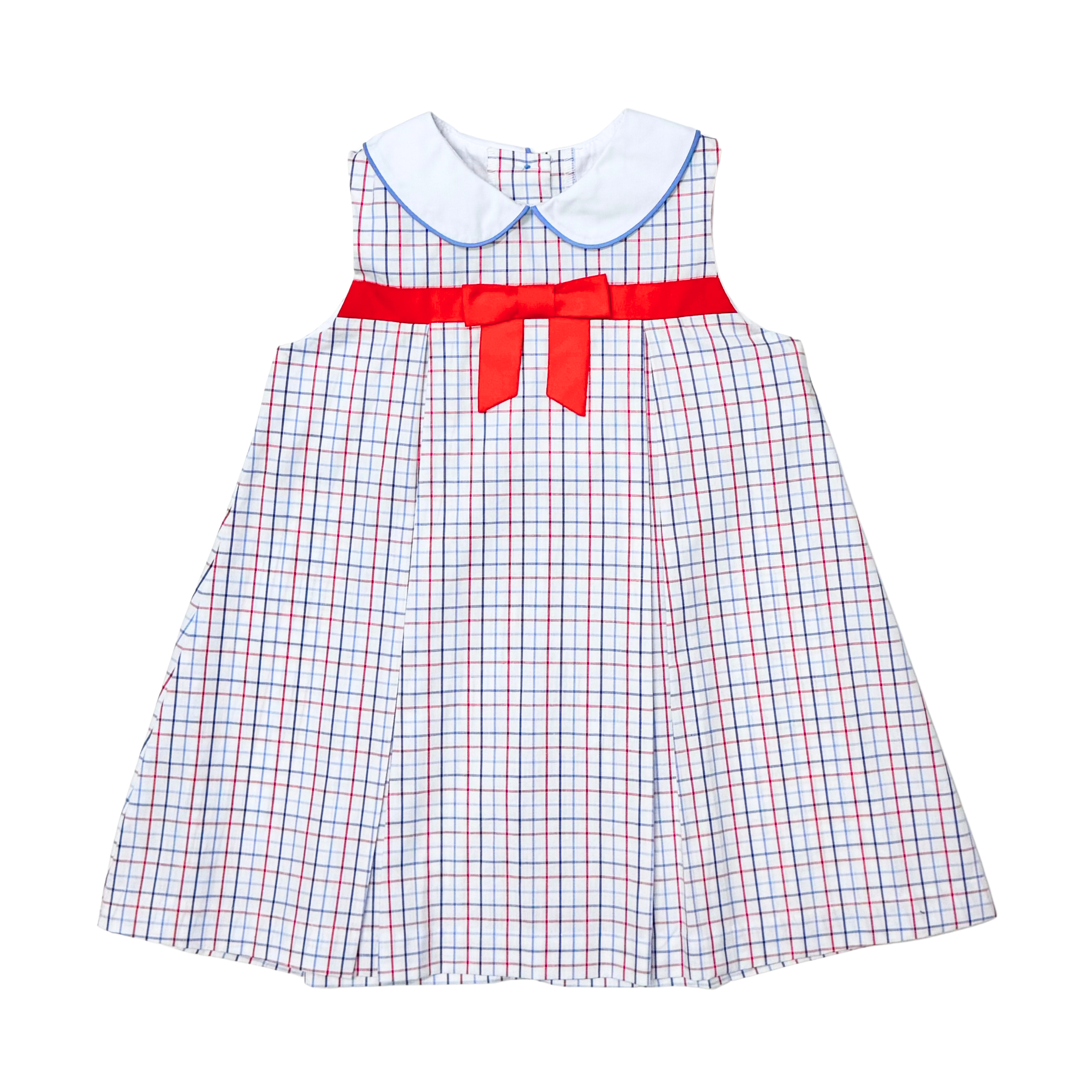 The Firetruck Juliet Dress is both playful and polished. This dress is made from star spangled windowpane fabric for a classic patriotic look. Ideal for special occasions or everyday wear.