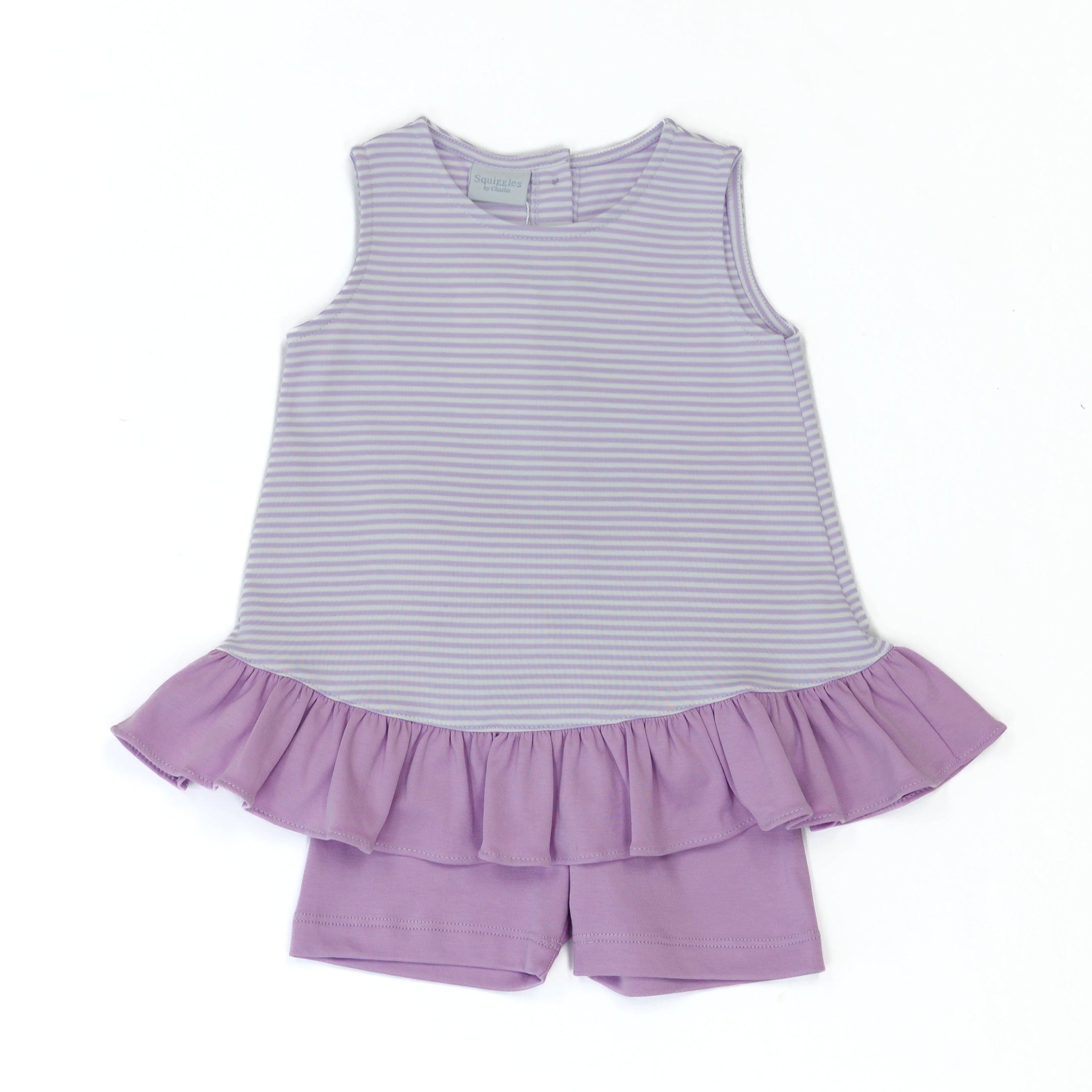 Ruffle up some fun with the Short Set in Lilac Stripe.