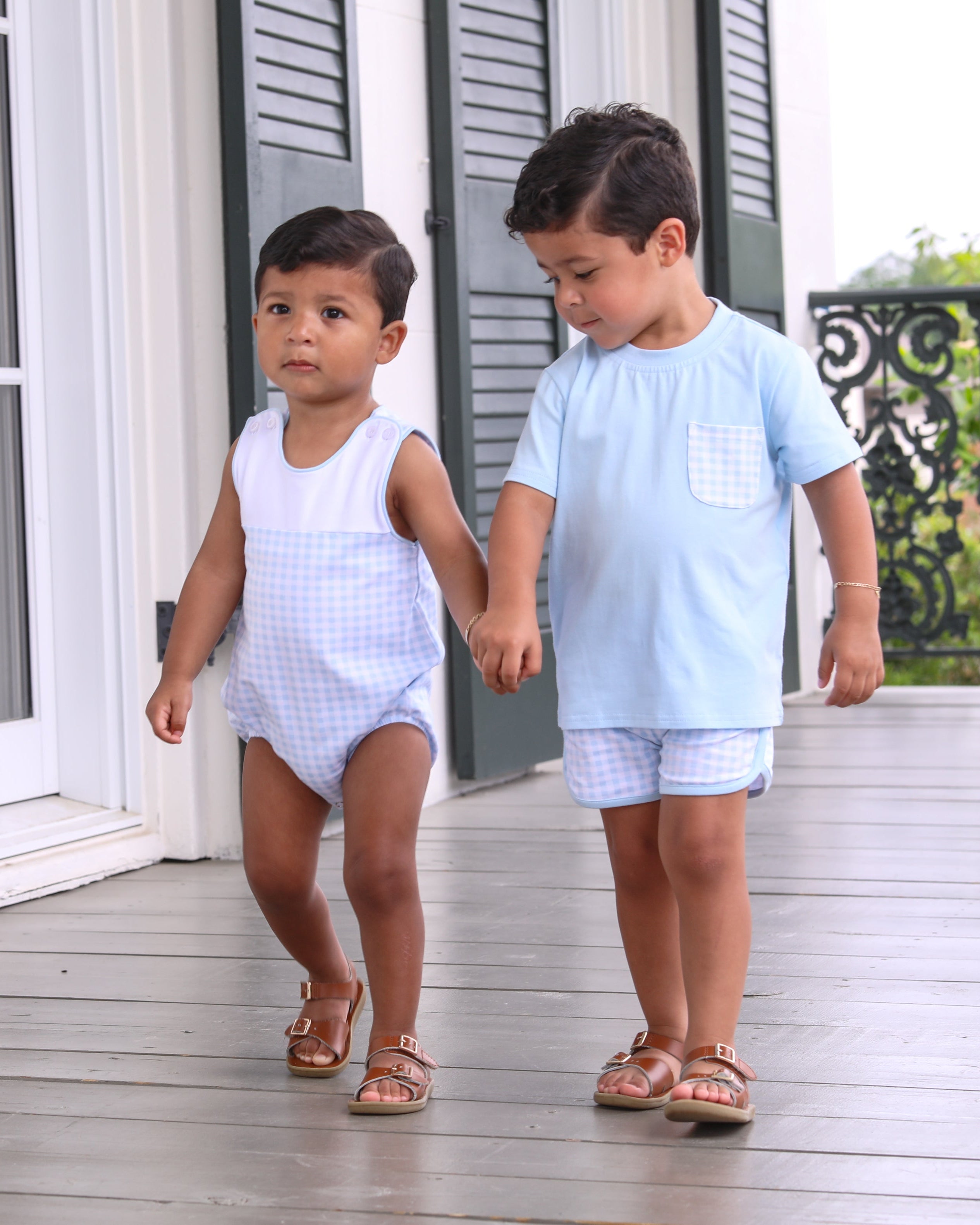 Trotter Street Kids- Madden Short Set- Light Blue Gingham