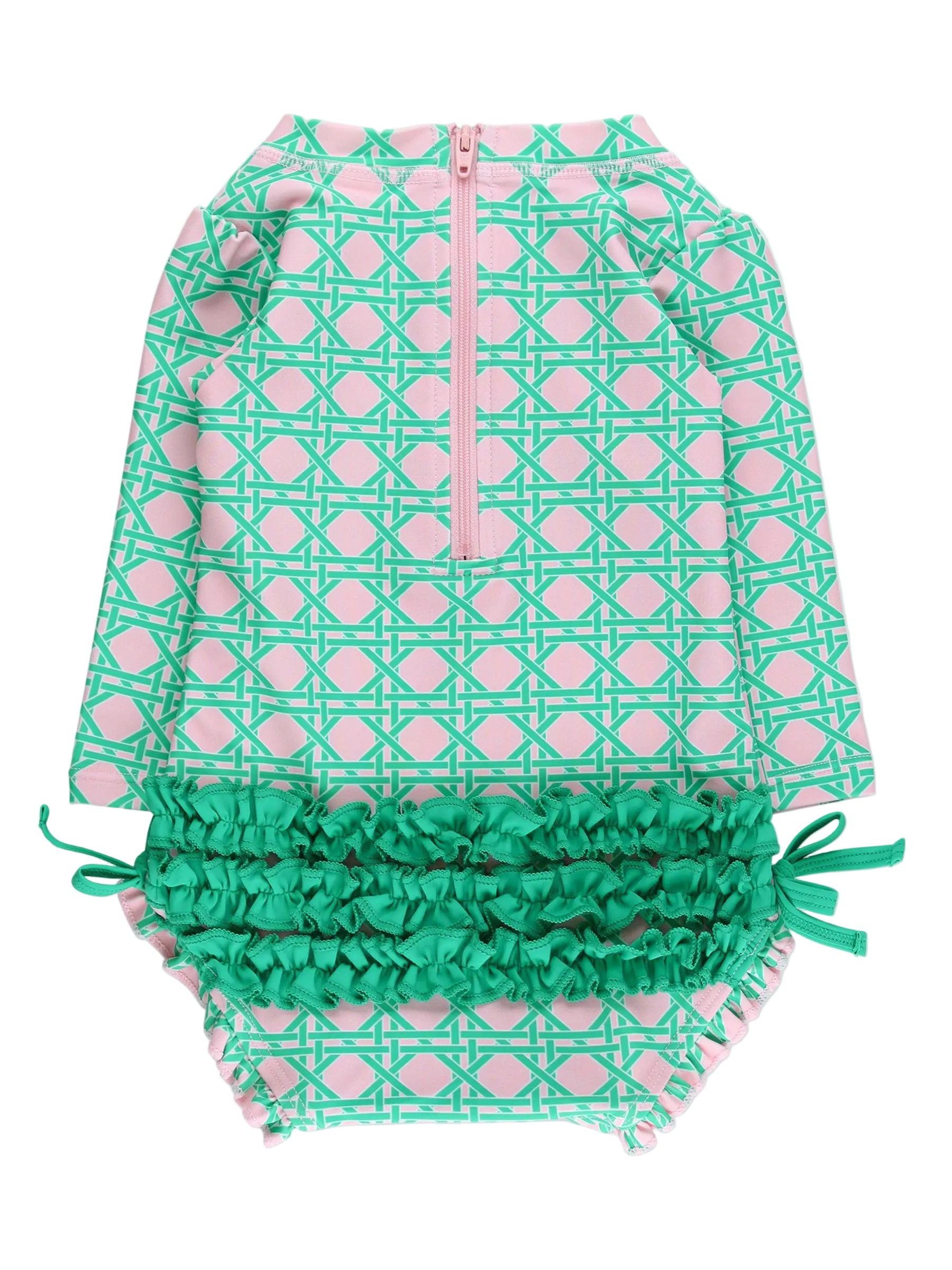 One Piece Rash Guard Swimsuit- Pink Coastal Cane