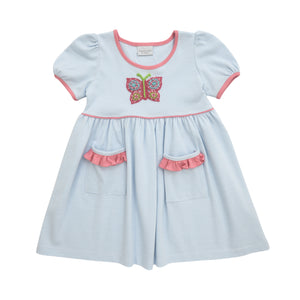 Get ready to make a statement with the Popover Ruffle Dress! This dress features a playful design, pairing a vibrant purple stripe with a fun pink trim and ruffle pockets. Perfect for girls who want to add a touch of flare to their wardrobe.
