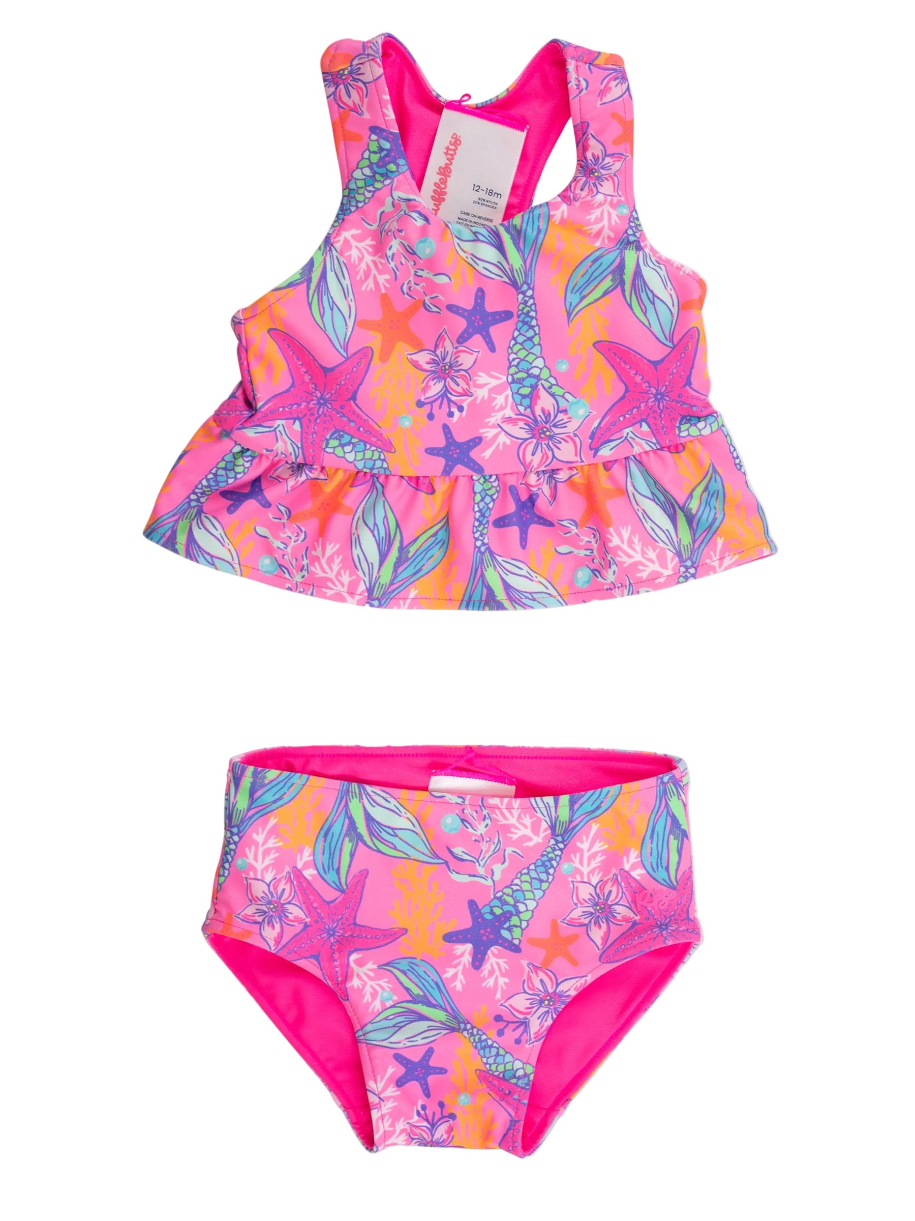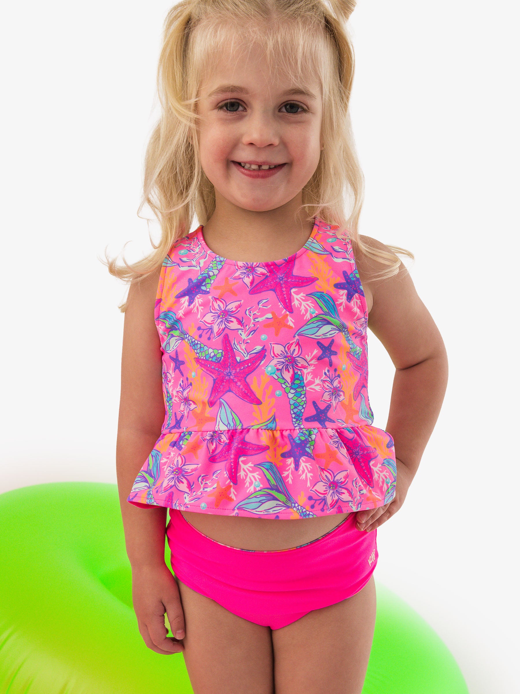 Ruffle Butts & Rugged Butts- Reversible Peplum Tankini 2-Piece Swimsuit- Neon Shimmer Mermaid