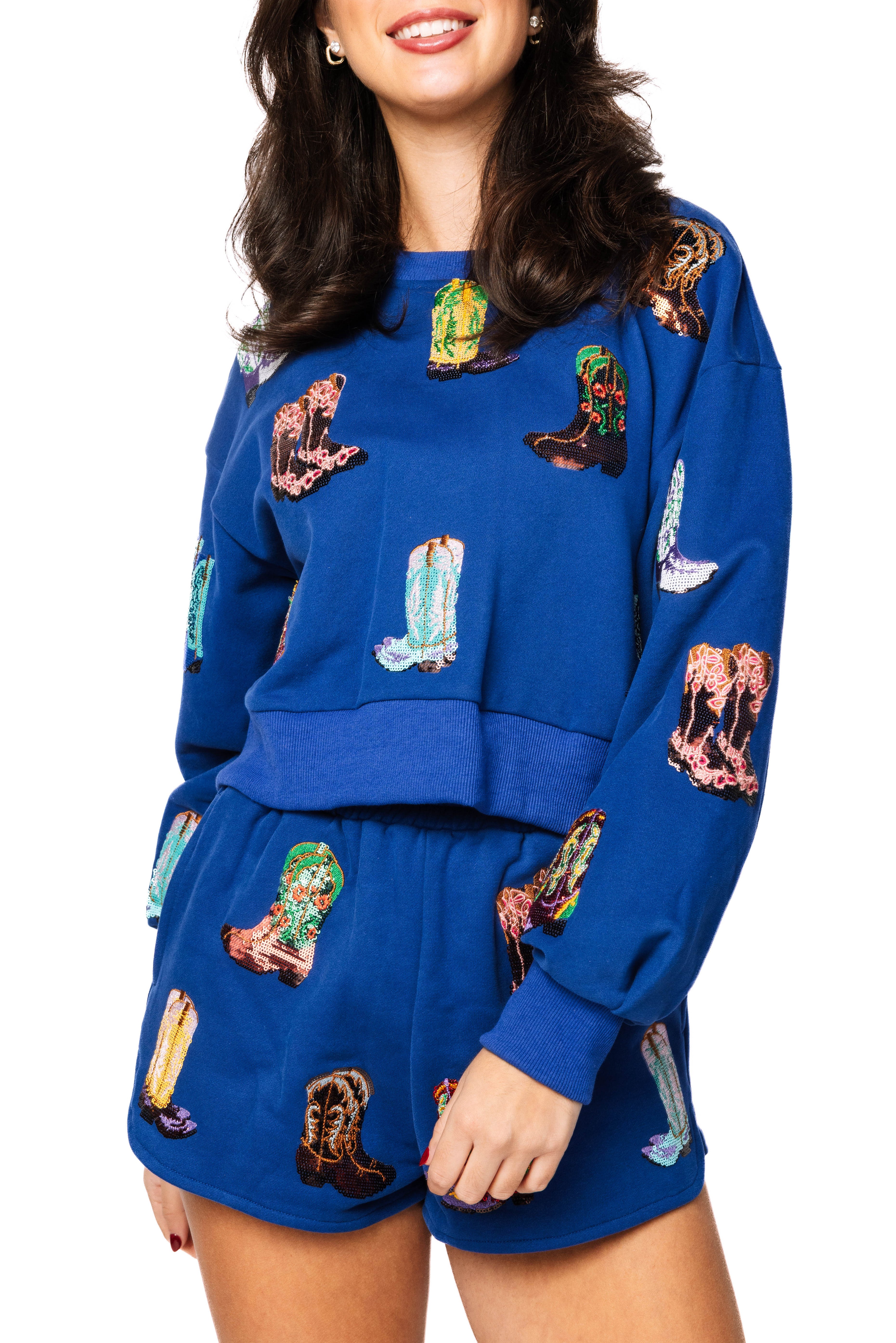 Royal Blue Multi Cowboy Boot Sweatshirt- (Women's)