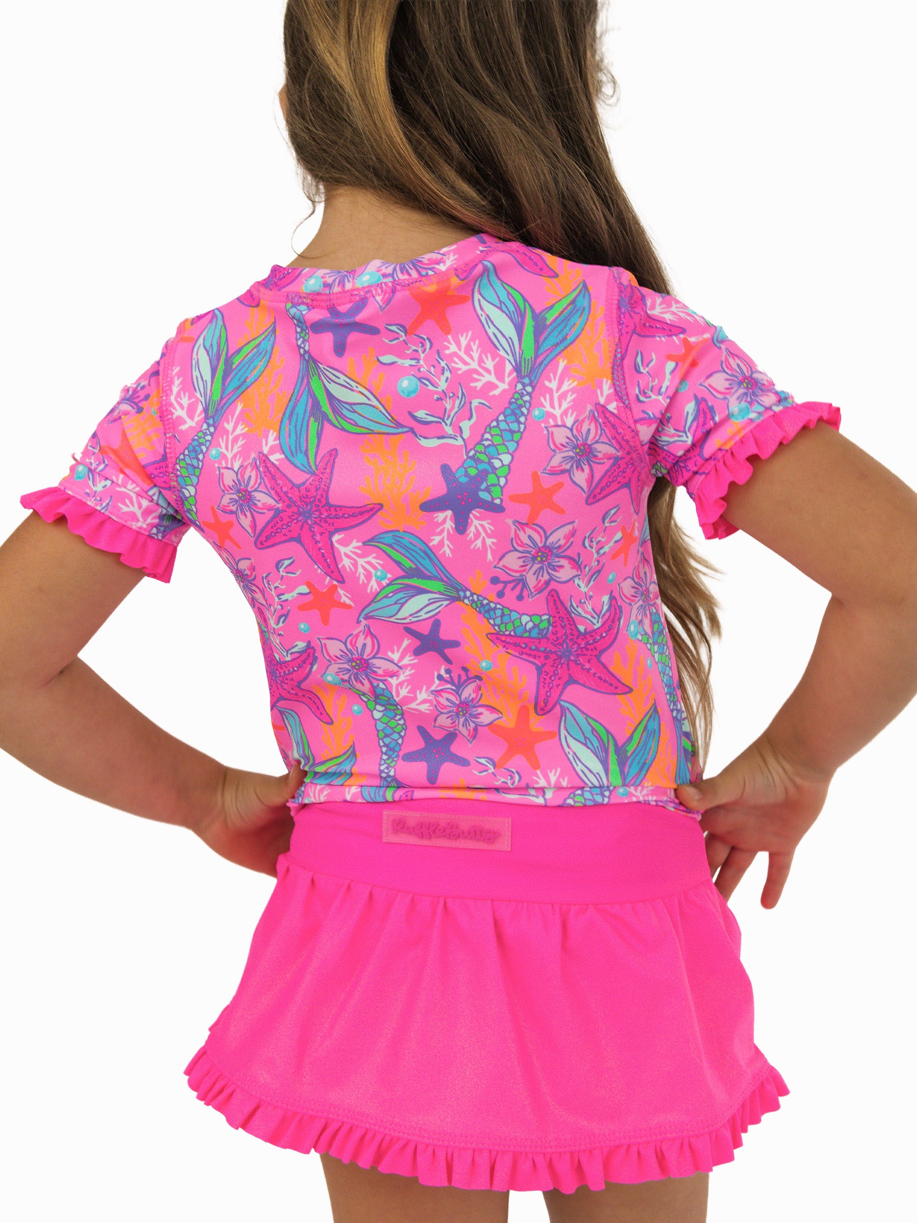 Ruffle Rash Guard Skirted 2-Piece Swimsuit- Neon Shimmer Mermaid