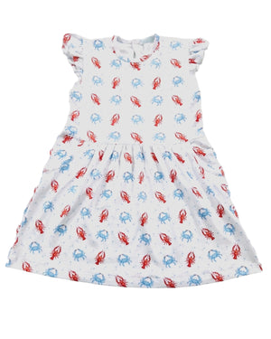 Set sail in style with this playful Sailboat Flutter Sleeve Pima Dress! With a charming sailboat print and convenient pockets, this dress is perfect for any adventure. Made with soft Pima cotton, your girl will stay comfortable and cute all day long.