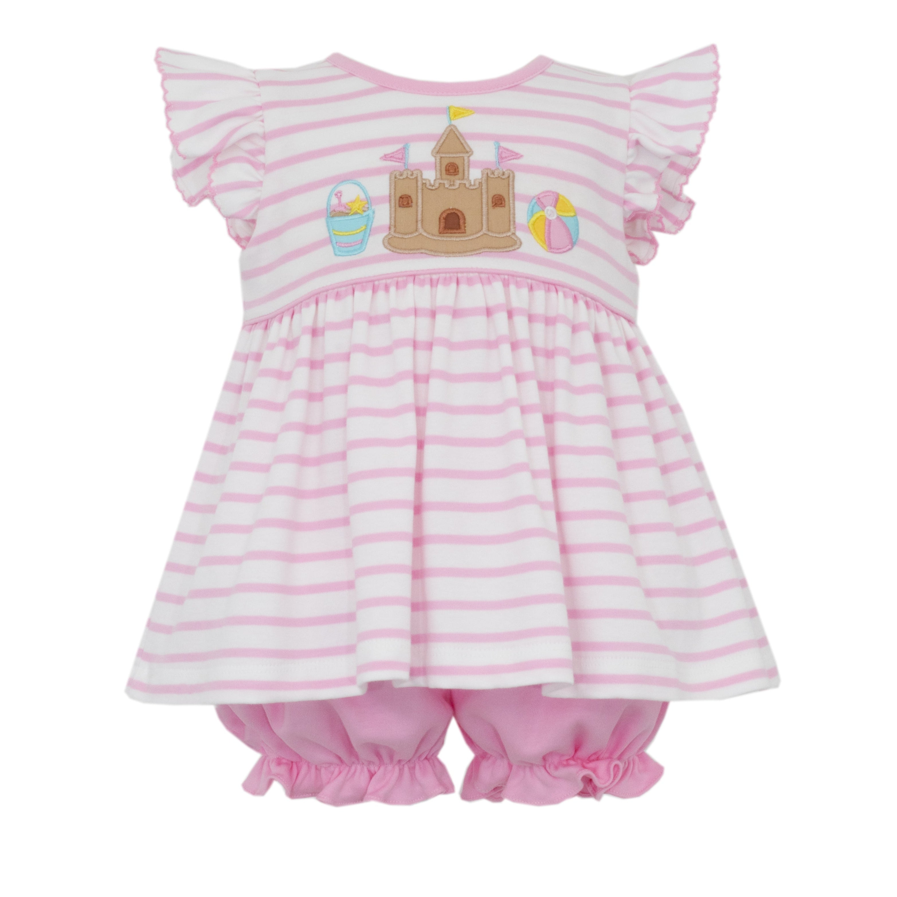 Sand Castle Knit Bloomer Set- Pink Stripe