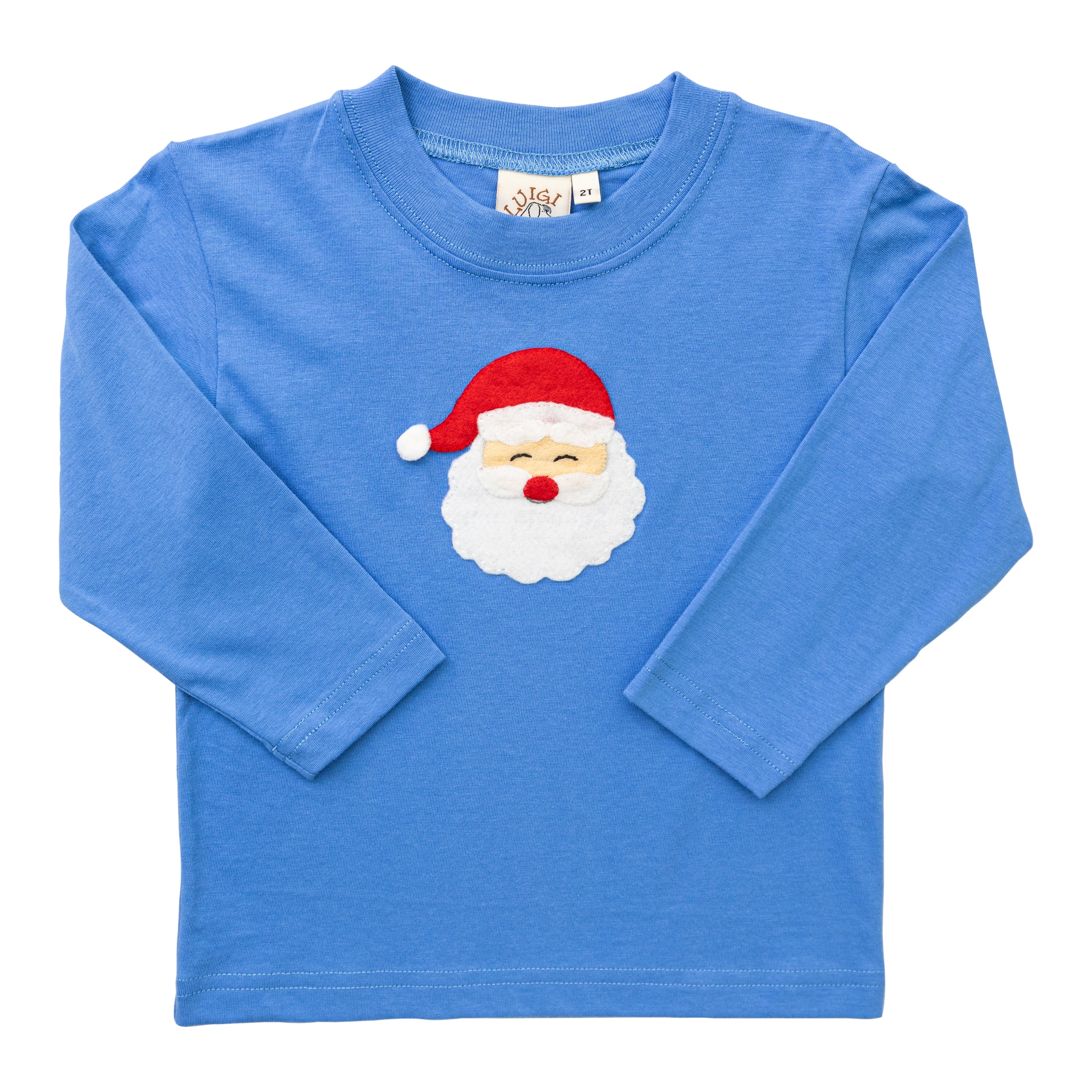Spread some Christmas cheer with the Santa Face LS Shirt! This blue LS Shirt features a fun Santa Face applique, perfect for adding a touch of holiday charm to any outfit. Ho ho ho