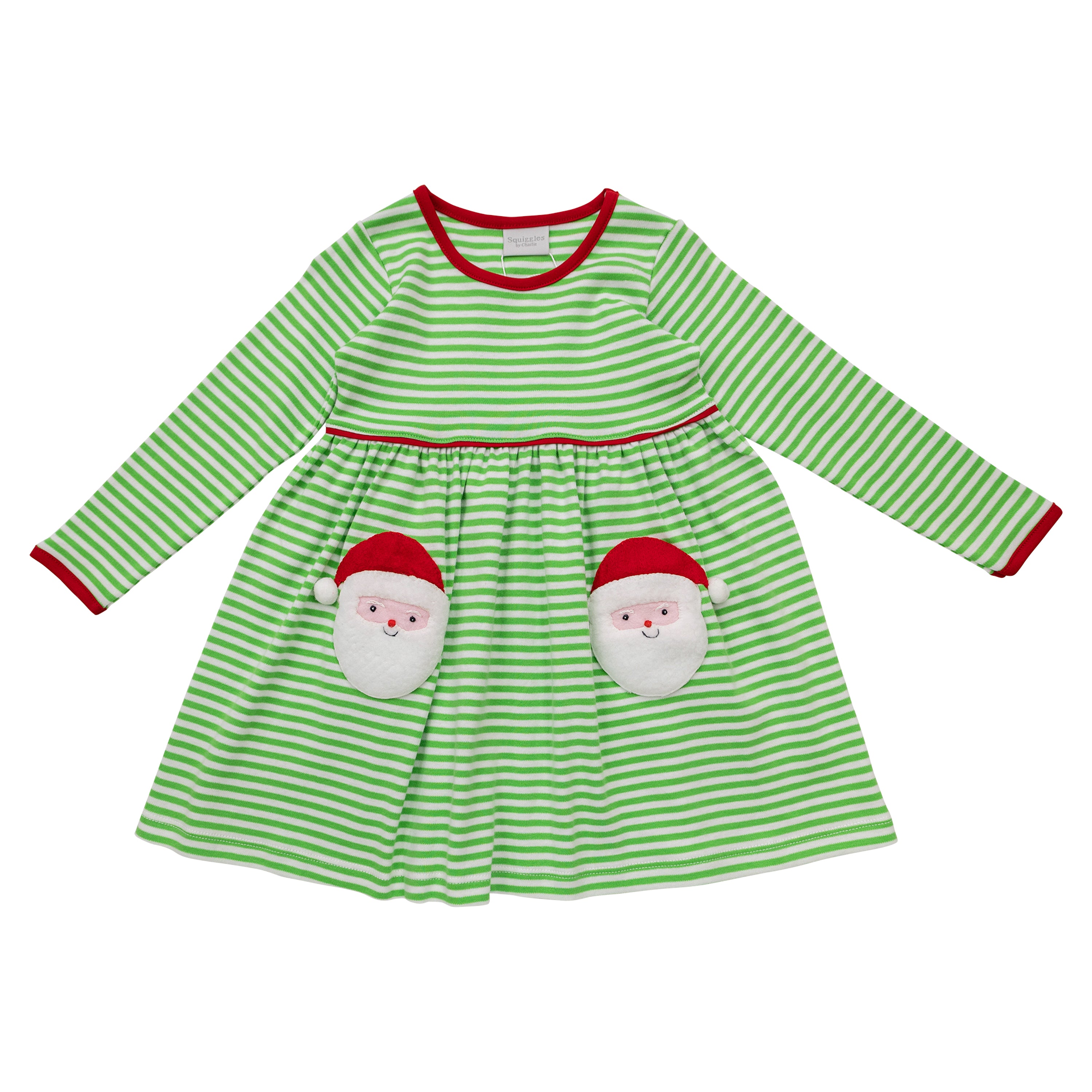 Dress up for the holidays with the Santa Face Pocket LS Dress! Featuring a green and white stripe pattern, this dress will bring a festive touch to your wardrobe. But the real star of the show? The adorable sherpa Santa face pockets, making this dress perfect for any Christmas celebration.
