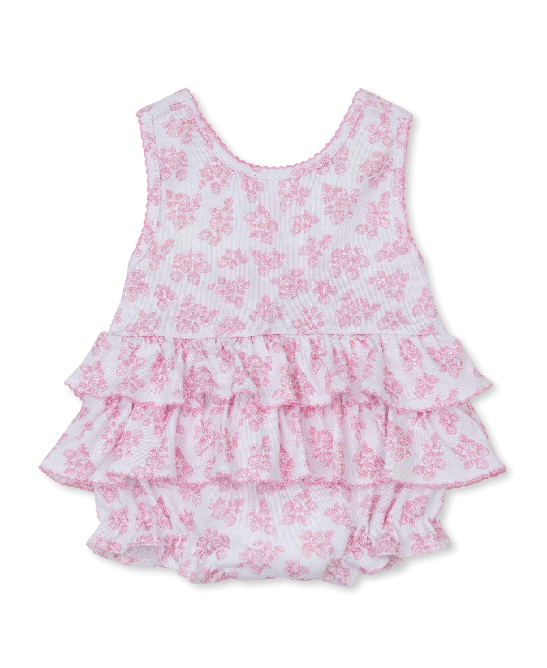 Perfect for warm weather, the darling bubble features the beautiful simply strawberries print, ruffles, and is made from the softest Pima cotton for ultimate comfort.