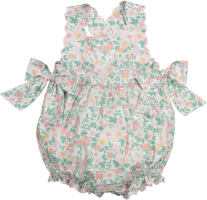 Get ready to bloom this summer with the Summer Garden Dress. This playful outfit features a summer garden-inspired print, sweet bows that tie in the back, and a scalloped hem for a fun twist. Perfect for young fashionistas who love to stand out in style.