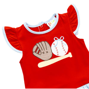 - Embroidered baseball on front
