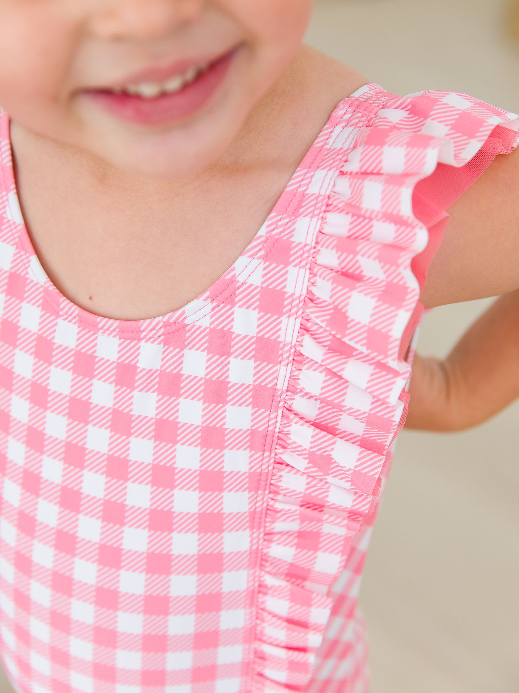 Waterfall One Piece Swimsuit- Bubblegum Pink Gingham