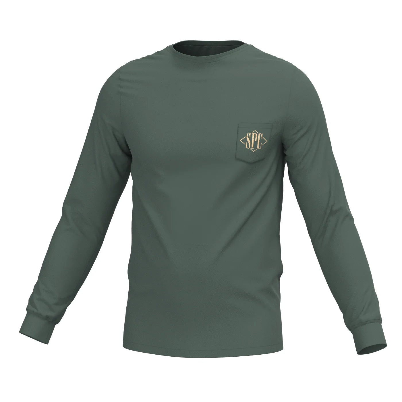 Youth Diamond Quail LS Pocket Tee- Duck Green